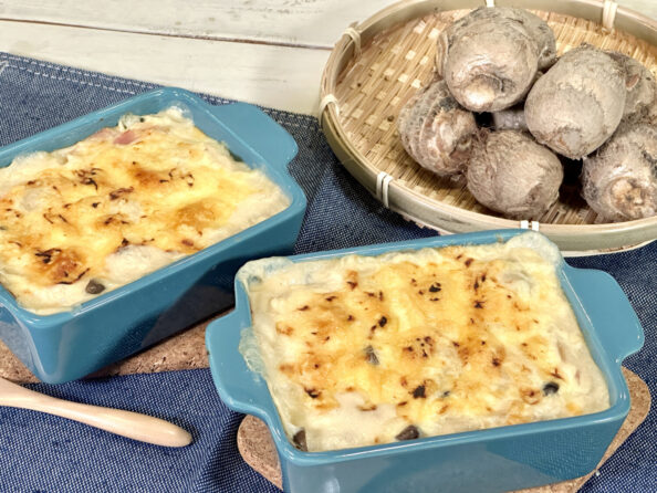 「さといもグラタン」は、小麦粉いらずで作れるお手軽レシピ。