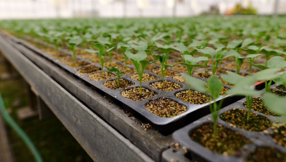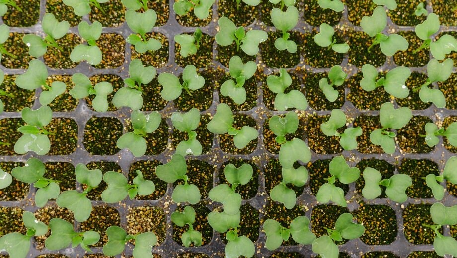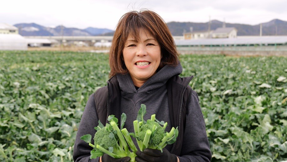 12~6月にかけてブロッコリーの収穫期を迎える、岐阜市西郷地区。1月下旬に訪れたハウスでは、ズラリと並ぶトレイの一面を青々と若葉が芽吹いていました。生命力たっぷりに葉を広げるのは、ポット育ちのブロッコリーの苗。ハウスでの安定した温度管理のもと、2月の定植に向けてコンディションを整えています。島塚美香さんは、ご主人と営むファームでブロッコリーの苗づくりから栽培、収穫までを一貫して担っています。