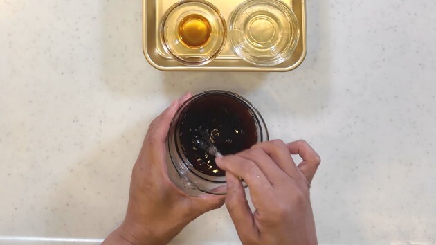 ③野菜を浸している間に調味料(醤油・みりん・砂糖・米酢)を合わせて甘酢ダレを作っておく。